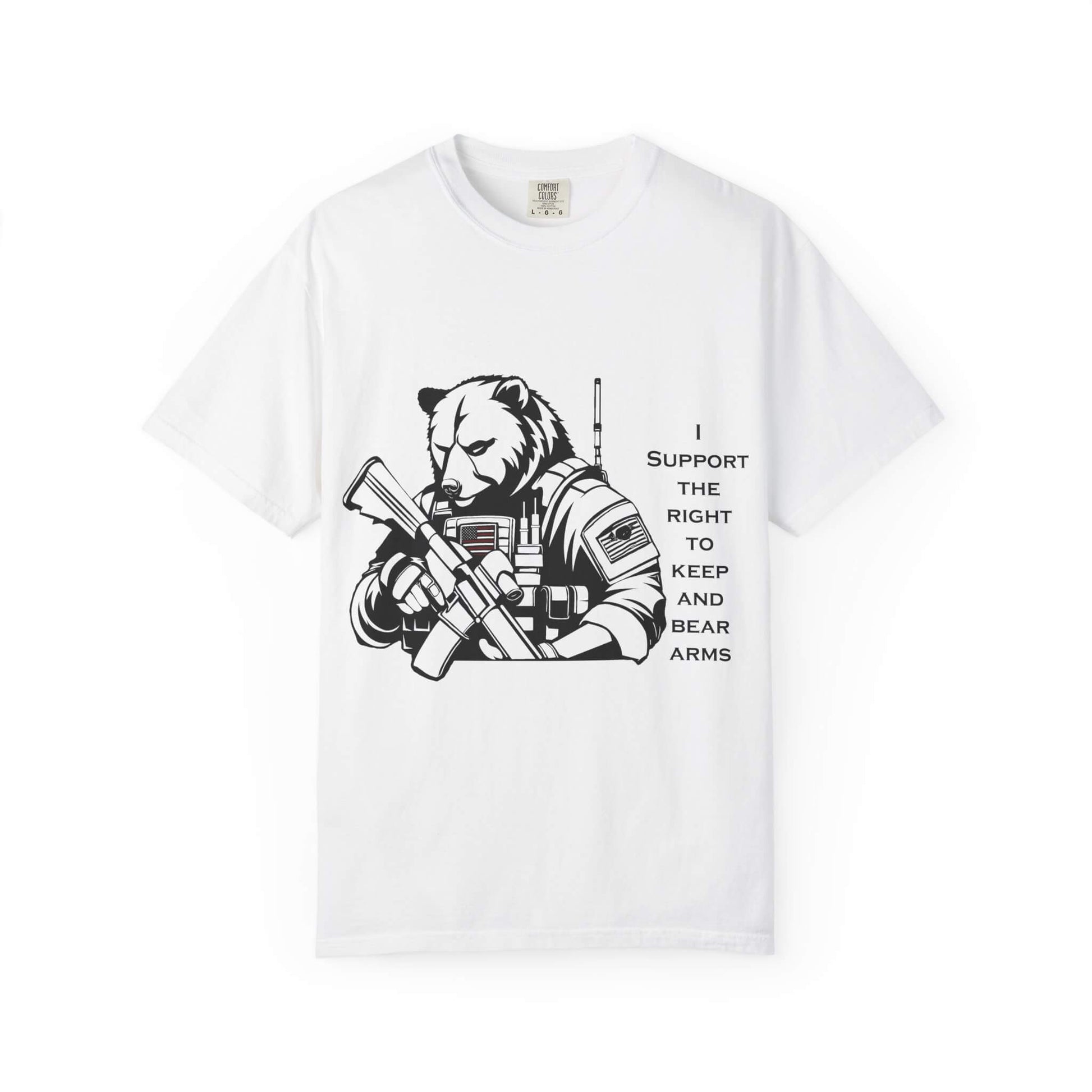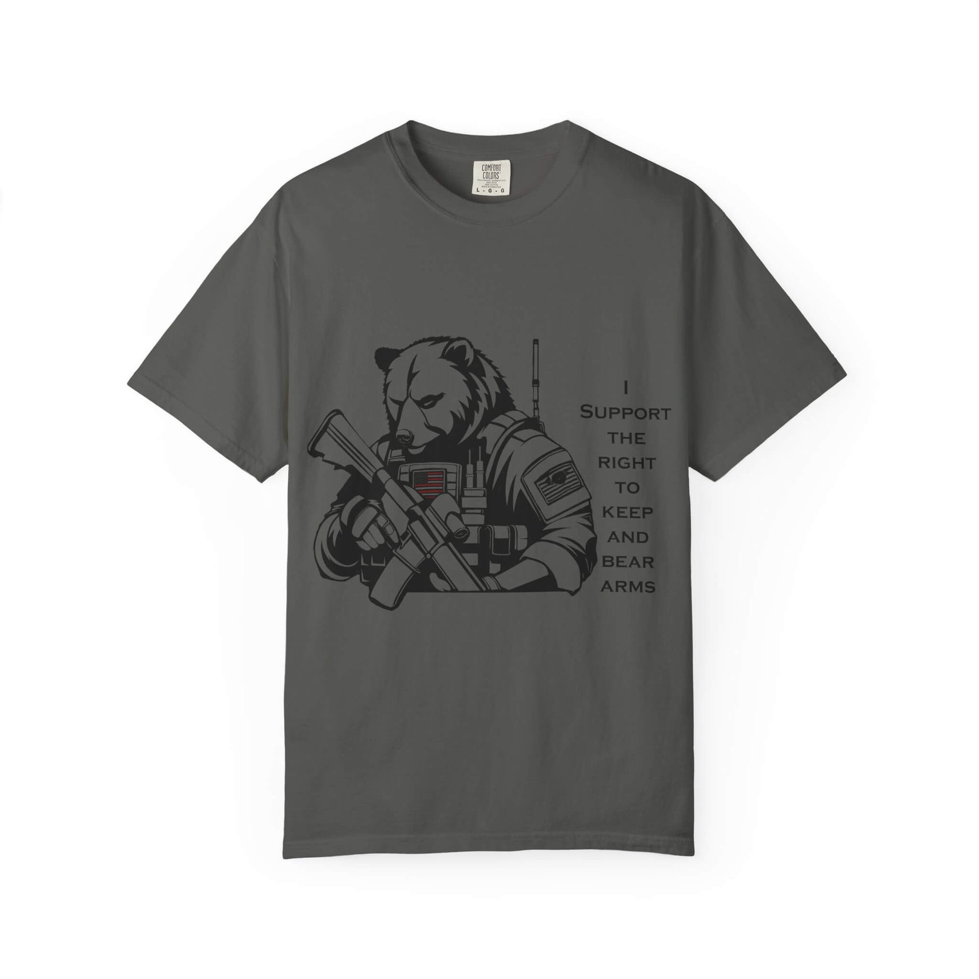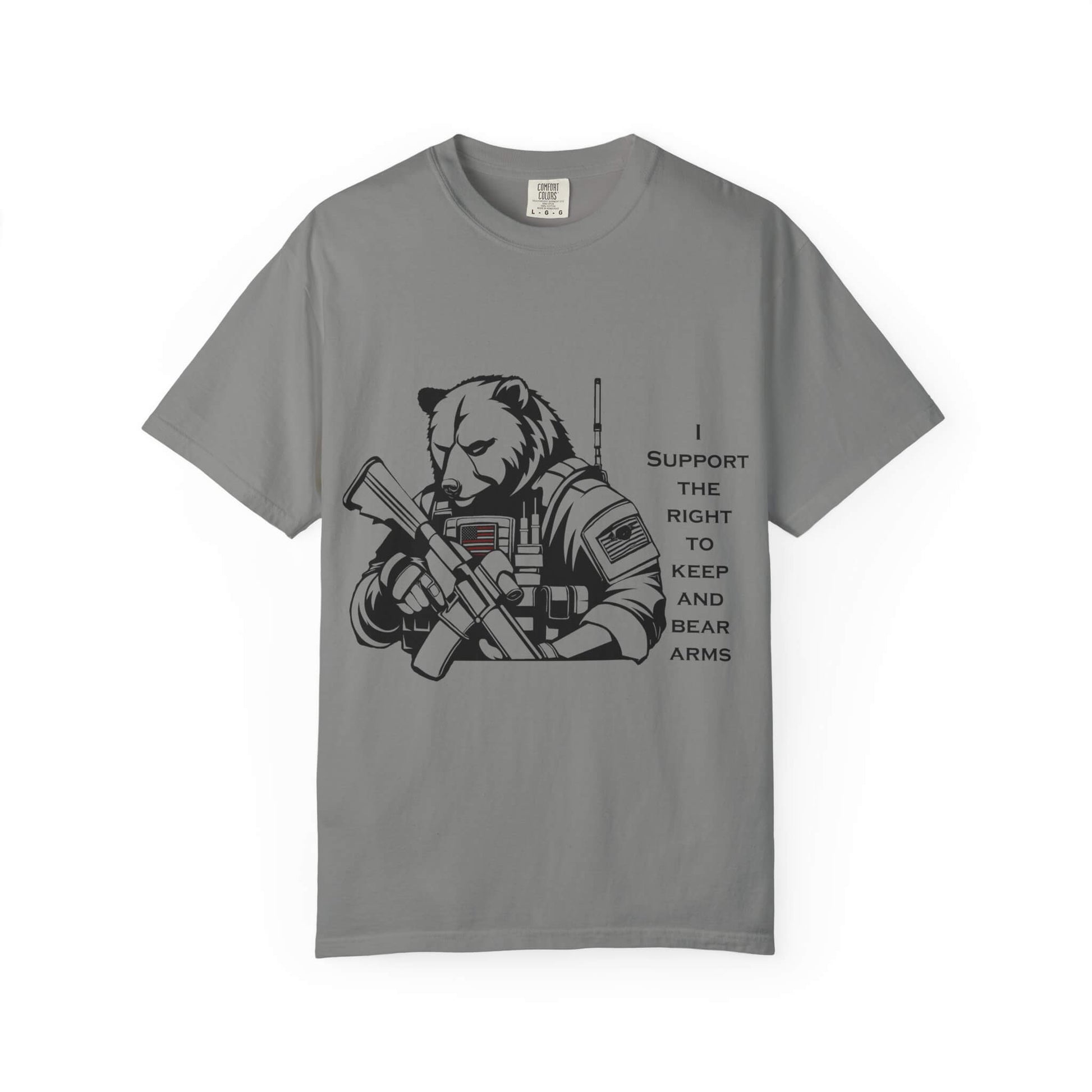 Welcome to the ultimate piece of funny gun lover gift apparel you've been waiting for. This tee isn't just about making a political statement; it’s about making a perfectly punny statement. If you're tired of generic, aggressive slogans and just want a clever shirt that perfectly captures your love for the Second Amendment and a good dad joke, you’ve found it. This design proudly proclaims: "I support the right to keep and bear arms," using the universally understood humor of a grizzly bear with a weapon. This is the definition of Constitutionally Cool Humor.